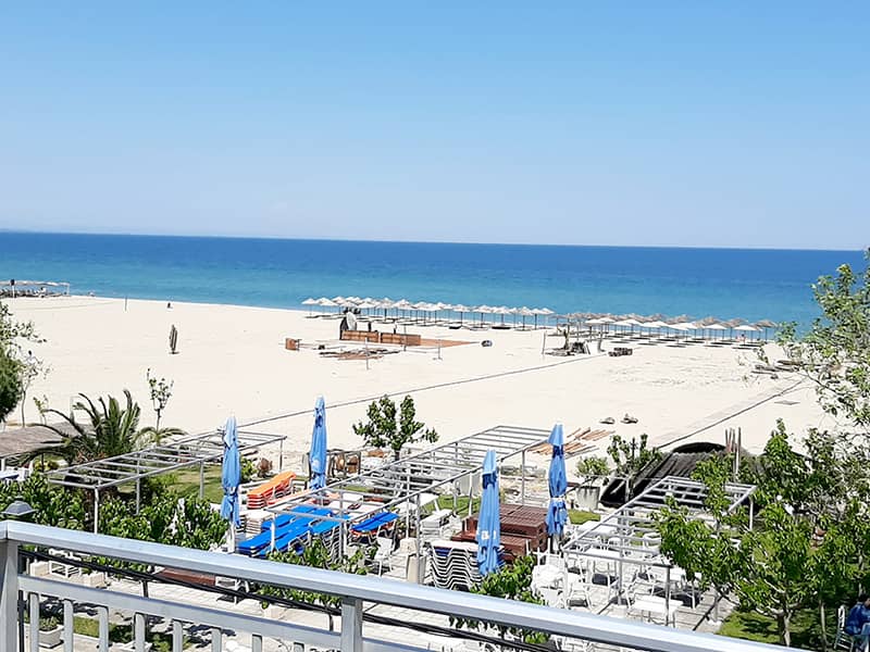 Boja mora nije tirkizna kao na Halkidikiju, ali more je čisto i bez talasa. Može se desiti da se zamuti kada su velike gužve u sezoni ili da se pojavi trava, ali uglavnom je mirno i prozirno.