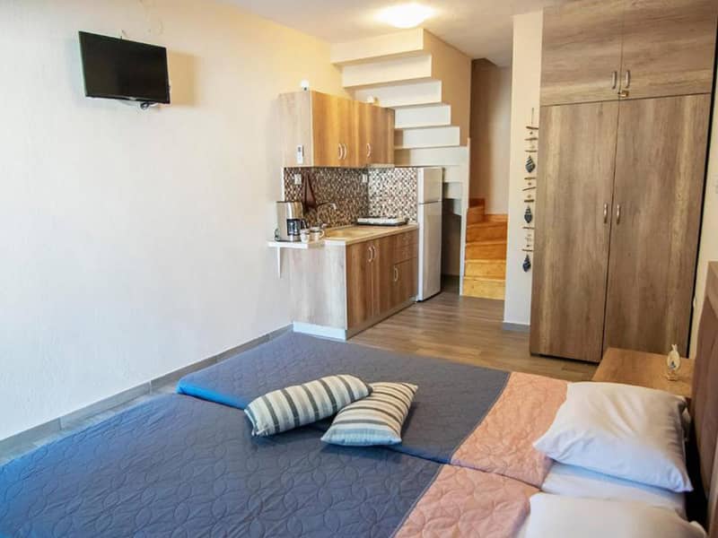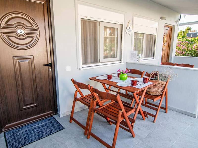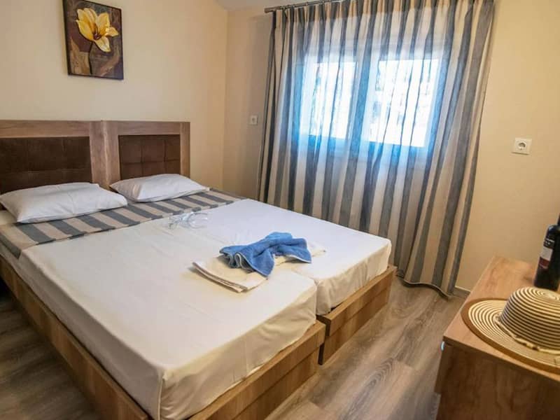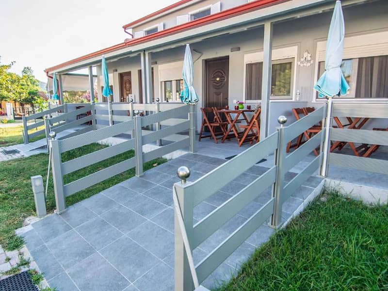 Lokacija: Vila je udaljena 100m od plaže. Nalazi se u centru letovališta. Opis: Poseduje četvorokrevetne mezonete. Svaka od mezoneta ima opremljen kuhinjski deo, kupatilo/wc, terasu, TV, WiFi internet i dva klima uređaja (uz doplatu na licu mesta od 10€). U neposrednoj blizini se nalazi super market, a vila ima sopstveni parking i roštilj, koji je na raspolaganju gostima.Apartmani VILA DAFNI